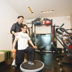 パーソナルトレーニングジムとボディケアサロンが併設。どちらも丁寧なカウンセリングにより、悩みや希望に寄り添ったトレーニングや施術が受けられる。プライバシーを大切にしたい人にもおすすめ。