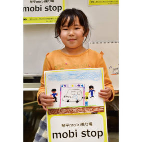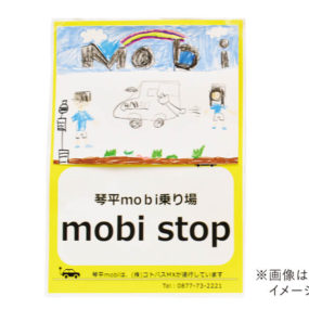 2022年10月から開始した、琴平バスグループの『(株)コトバスMX』が運行するシェアリングモビリティサービス「琴平mobi」。琴平町内全域約250ヶ所で乗降することができ、アプリや電話を使って朝7時から夜22時まで利用できる。子どもの習い事や塾の送迎、高齢者の買い物や通院、趣味の会へのお出かけまで利用シーンはさまざま!また、今年2月には町内で活動する『移動まちじゅう図書館』と共に親子向けワークショップ&説明会を開催。子ども達が描いた絵にも注目!