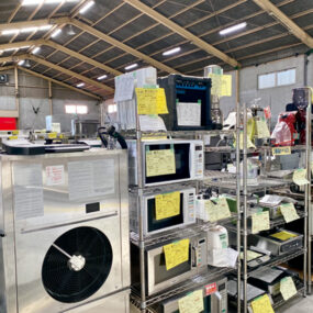 目印の3色カラーのヘリコプターも一緒にお引越し!新店舗は以前の店舗の1.5倍!広々とした店内には所狭しいと新品中古問わず厨房機器が勢揃い。プロ仕様の調理器具も種類豊富。ただ今、オープニングにつき新商品はもちろん特価品も多数入荷中。厨房機器の販売・買取以外に店舗の開業・改装、内装や厨房のレイアウトのアドバイスなどお店づくりのお手伝いもおまかせ!Instagram(@tenpos__takamatsu)。