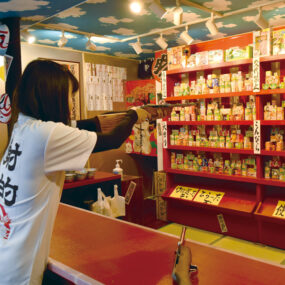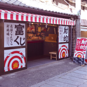 国内外から多くの観光客が訪れる『こんぴらさん』の表参道27段目に本格的な射的場がOPEN。8発500円で、修学旅行の学生や参拝客など、子どもから大人まで夢中になって的を狙う。積み重ねた駄菓子が的となっており、ゲットした駄菓子はそのまま持ち帰ることも、個数に応じておもちゃや冷えたアルコール飲料などと交換することも可能。参拝の楽しい思い出にぜひ挑戦してみて。