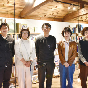 長田さんが現在、自身の建築に繋がっていると思える本や、『讃州堂書店』『絵本文庫ふみくら』『わがんく文庫』『古本YOMS』の5社が選書した本が並ぶ。(画像7枚目)