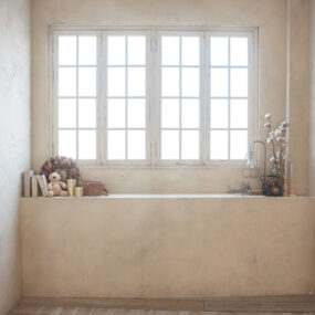 光がふんわりと入るスタジオで柔らかな家族写真を
