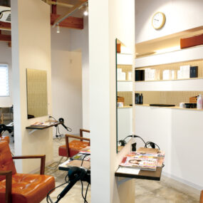 うどん屋さんだった建物をリノベーションし、ヘアサロンとしてリニューアル!白を基調とした店内は天井が高いので広々とした空間が気持ちいい。“地元の方に気軽に来て欲しい”との想いでお客さん自身で髪を乾かすセルフブローを取り入れ、リーズナブルな価格を実現。高品質のカラーリングやパーマ剤を揃えるこだわりも。予約なしの当日飛び込みも可能なので、まずは気軽に来店してみて。