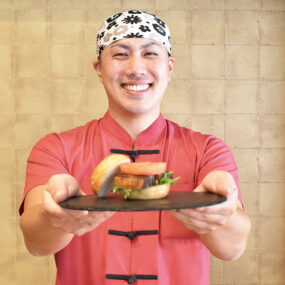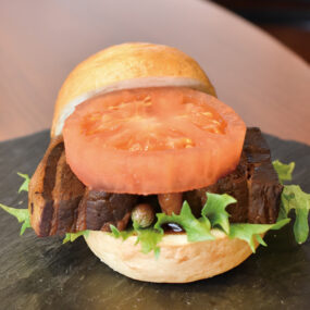 「さぬきの夢2023」100%で作ったベーグルに東坡肉(トンポーロー)という中国の角煮を野菜とサンドしました。コース料理のみ提供可能です!ご予約時にご注文ください。by長江SORAE 石原豪士さん