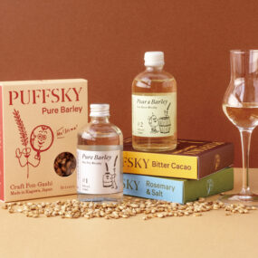 うどん文化が根付き、麦の栽培に適した香川県で、麦由来のお酒を作ろうと考えた代表・小川さん。“ウイスキー”に着目して“FarmtoGlass”をコンセプトに、ウイスキーづくりをスタート。麦を育て収穫し、千葉県の蒸留所で発酵・蒸留・熟成、ボトリング。小川さんは 全工程に関わることを大切にしてい る。また、“麦から作れるプロダクト”を常に模索し、今回誕生したのが大麦で作る“ポン菓子”。昔ながらのポン菓子をウイスキーに合うように開発。軽 やかな食感と口いっぱいに広がる麦本来の香ばしさが楽しめる。