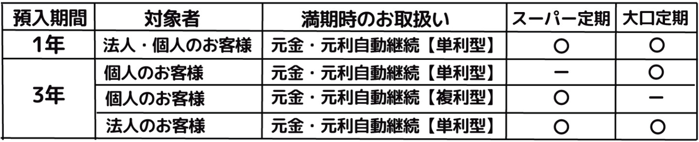 預入期間:1年・3年(元金・元利自動継続扱い)