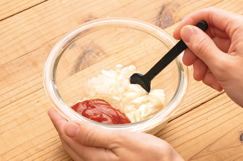 (2)【B】を混ぜ合わせてソースを作る。