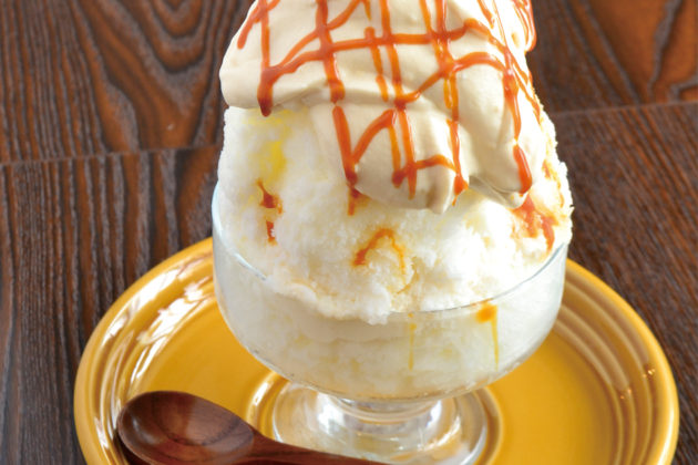 キャラメルソース入りクリームに、さらに網目状にキャラメルソースをたっぷり!甘すぎないので、ミルク氷との相性も抜群。