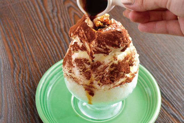 ティラミスクリームに、自家製エスプレッソソースをかけて完成!ちょっぴり大人テイストのかき氷。