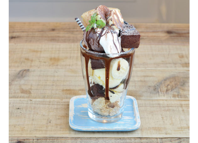手作りの濃厚ガトーショコラがのった食べ応え抜群のパフェ。たっぷり詰まった2種類のアイスが暑い夏に嬉しい!