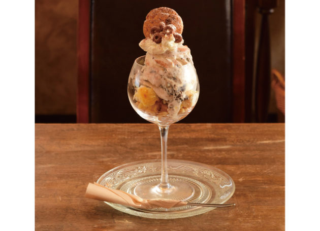 グラスの中にグラノーラとスポンジを敷き詰め、クッキークリームアイスをのせた逸品。優しい甘い誘惑に酔いしれて。