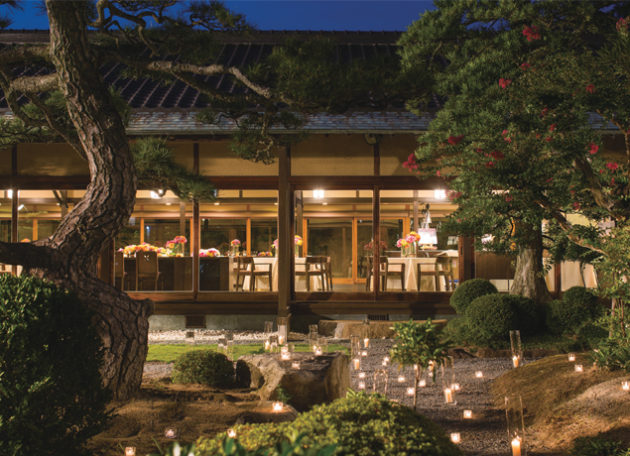 閑静な住宅街を抜け、屋島西麓に佇む日本情緒豊かな元料亭をリノベーションし生まれ変わった書院造の和邸宅「弓絃葉」。四季折々にお楽しみいただける約1000坪の本格和庭園と新鮮な魚介や地元のお野菜を使った旬のお料理には料亭時代から受け継がれた職人気質の丁寧な味へのこだわりが今も生きています。