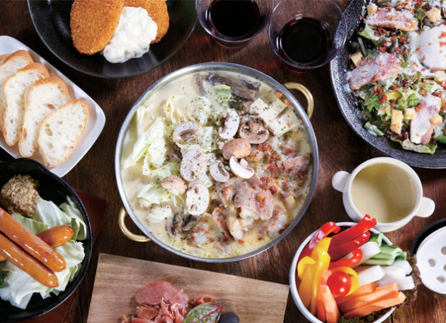 上質な食材を使ったリーズナブルな料理が楽しめると人気の“大人の隠れ家ダイニング”。深夜2時まで楽しめるお食事は、石窯で焼いたピッツァをはじめ、肉・魚料理、パスタ、リゾット、おつまみと種類豊富!パフェやデザートピッツァなどもあるので夜カフェやバー使いも◎。今年からはじまる「鍋」は、「マルゲリータ風トマト鍋」と「クリームチーズ鍋」の2種類。どちらもこだわりの具材がたっぷり入っており、贅沢!寒い冬はより一層、美味しく感じられること間違いなし。今年は、非日常でラグジュアリーな空間で、“特別感のある忘年会”にしてみては?