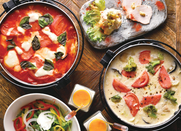 上質な食材を使ったリーズナブルな料理が楽しめると人気の“大人の隠れ家ダイニング”。深夜2時まで楽しめるお食事は、石窯で焼いたピッツァをはじめ、肉・魚料理、パスタ、リゾット、おつまみと種類豊富!パフェやデザートピッツァなどもあるので夜カフェやバー使いも◎。今年からはじまる「鍋」は、「マルゲリータ風トマト鍋」と「クリームチーズ鍋」の2種類。どちらもこだわりの具材がたっぷり入っており、贅沢!寒い冬はより一層、美味しく感じられること間違いなし。今年は、非日常でラグジュアリーな空間で、“特別感のある忘年会”にしてみては?