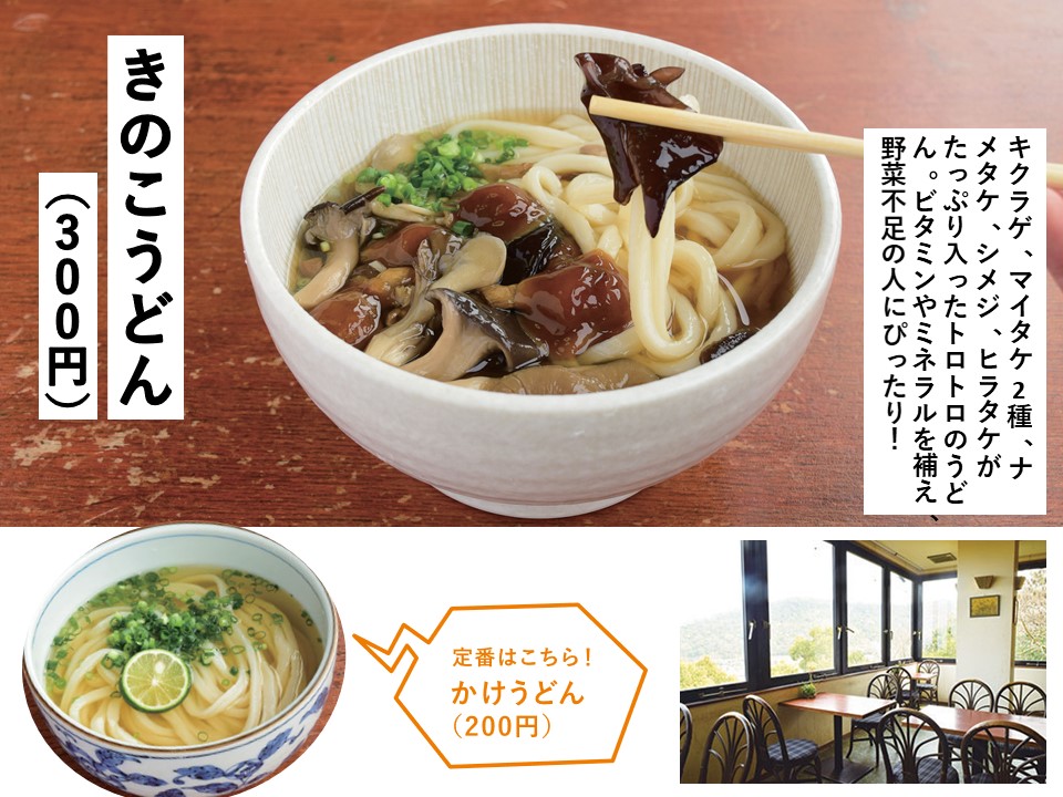 これでもかときのこをのせたうどんでビタミンやミネラルを補おう!