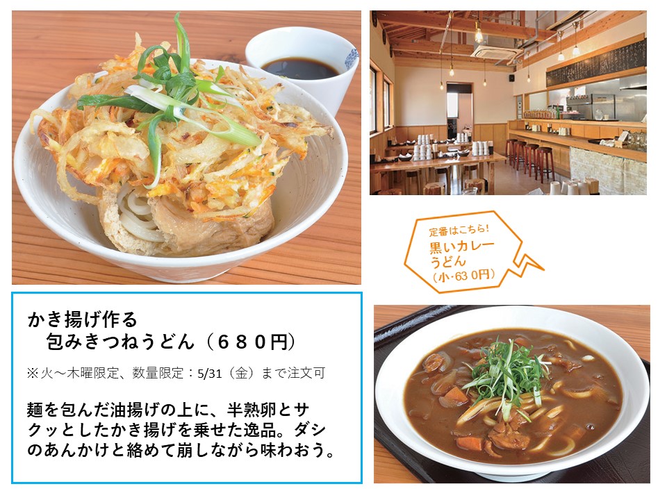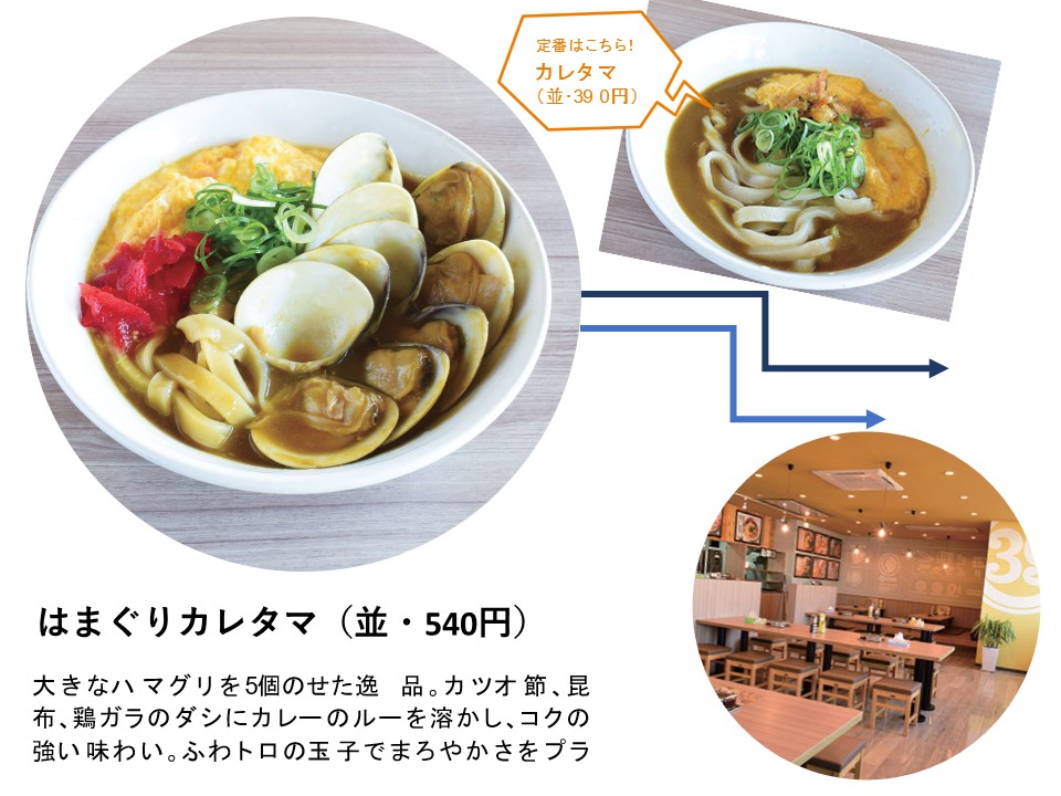 コクのあるカレーとふわふわの玉子が特徴的なカレーうどん専門店。伊吹のイリコを練りこんだ平打ち麺はカレーと絡みやすいように作られている。また、今月からスイーツのテイクアウトも登場!おすすめはしっかりとした食感の「自家製プリン(200円)」。