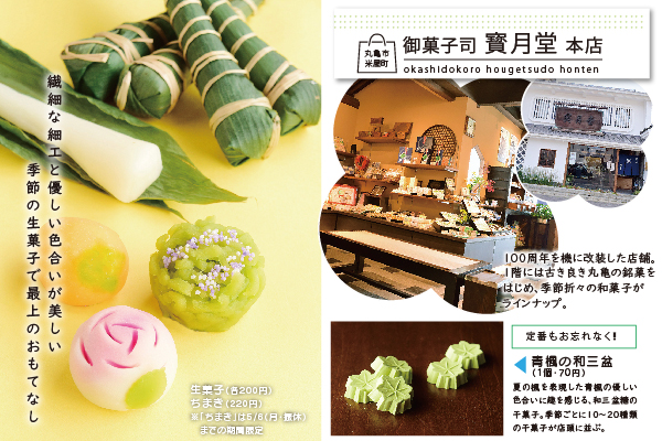 100年余りもの歴史を有する老舗和菓子店。何世代にも渡って地元の人々に愛されており、店頭で繰り広げられるお客様との和やかな会話も『寳月堂』の魅力。また、代々受け継いできた伝統の技や味を守りつつ、時代に合わせた新しい取り組みも行なっており、人々に寄り添ったスタイルを大切にしている。4/20(土)から、昨年も大好評だったかき氷の販売を開始するのでお楽しみに!