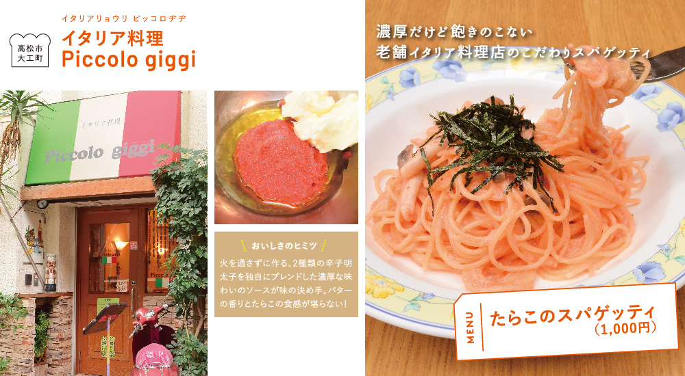 火を通さずに作る、2種類の辛子明太子を独自にブレンドした濃厚な味わいのソースが味の決め手。バターの香りとたらこの食感が堪らない!