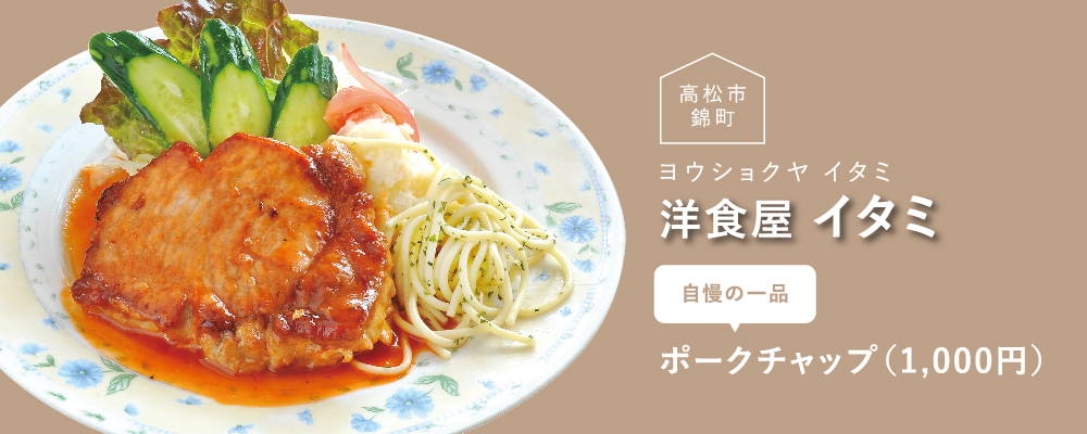 鉄板料理店などで修行していた店主の高橋さんは、ハンバーグなどの焼いて作る洋食メニューをフライパンではなく鉄板で調理するのがお決まりのスタイル。華麗な手捌きであっという間に作り上げる料理はまさに逸品揃いで、幼少の頃から通う地元住民や香川のトップ企業の重役など、様々な人が足繁く通うのも納得。来年で30周年を迎えるにあたり「良い料理をゆっくり味わってもらえる店でありたい」という真っ直ぐな想いを教えてくれた。