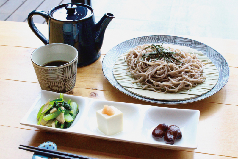 オーガニック食材を取り入れたり、地産地消に取り組むカフェ「Ethical Garden」から、そば粉100%、そして全て国産粉を使用し、かつ無塩という徹底したこだわりの和ランチ「本十割そば」が登場!つゆは完全無添加のだしに、有機しょうゆを独自ブレンド。つゆに割って頂くそば湯には、香りの高さが自慢。薬味には土作りからこだわった九条ねぎや、無添加・無着色のわさびを使用するなど、随所にこだわりを感じる一品に。