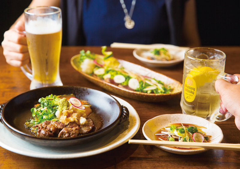店内はカジュアルで気取らない雰囲気。お1人様はもちろん、しっかり食べたい1軒目から2軒目、シメのラーメンまでお好きなタイミングでふらっと立ち寄って。