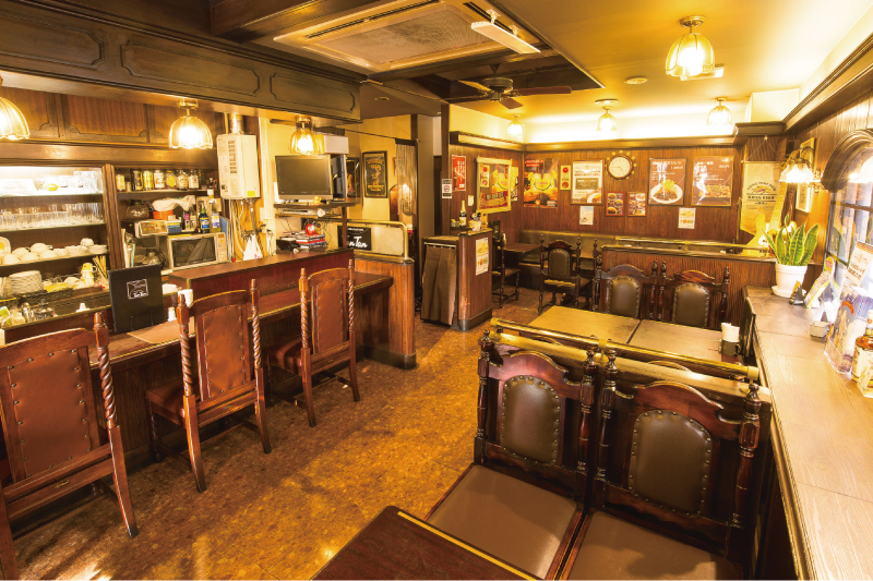 店内はノスタルジックな趣のある雰囲気で、居心地がいいと評判!夜はアルコールとともにアラカルトも楽しんで。