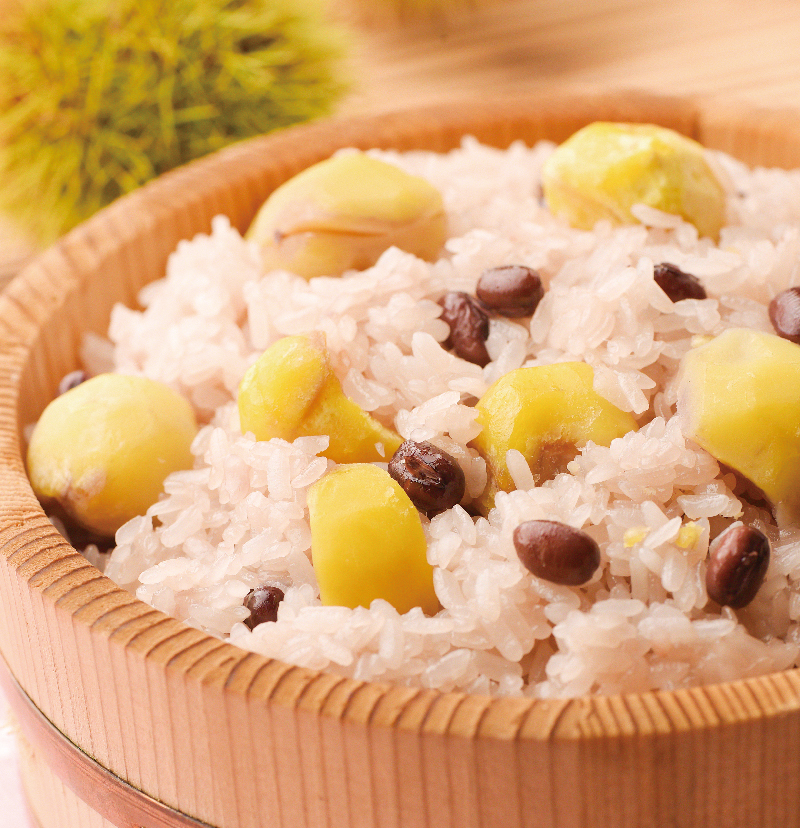 届いたばかりの新栗を入れて早朝から蒸し上げる「栗おこわ」は、もっちりふっくらしたおこわと栗の上品な甘さとホクホク感が格別の味わいです。秋の味覚をぜひ味わって!