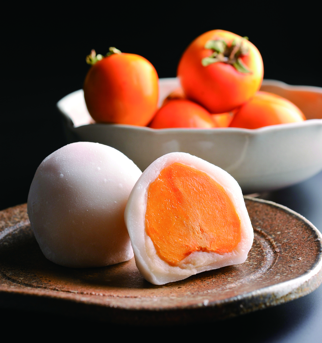 香川の太秋柿の中でも「チビ太」と呼ばれる甘みの強い柿を使い、丸ごと大福にしました。優しい甘さとジューシーな果肉が魅力的な旬の美味を。