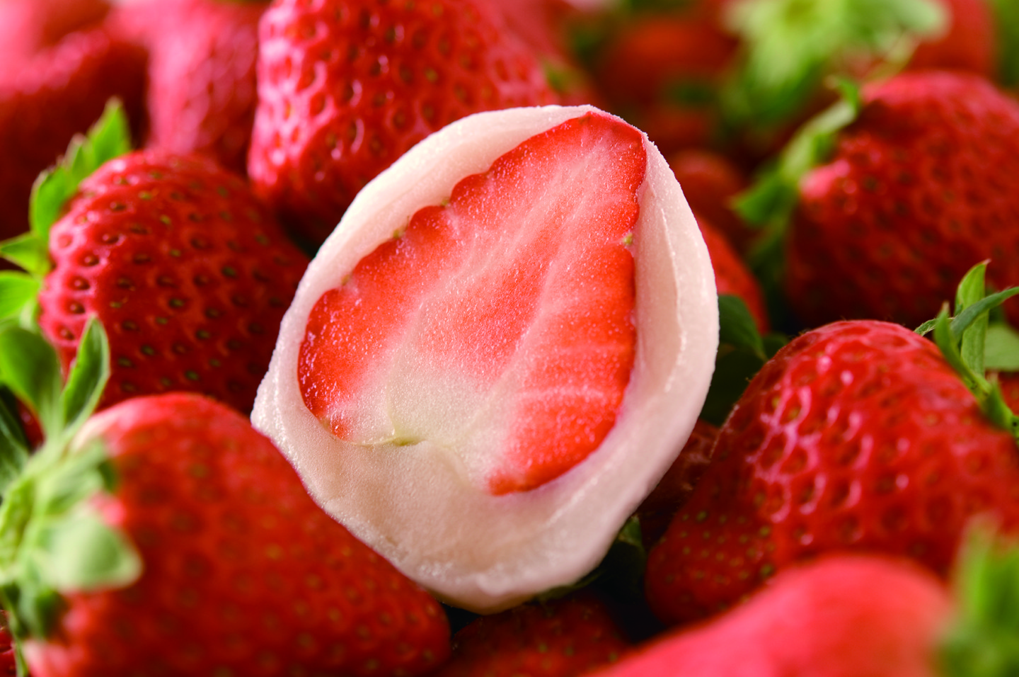 二種類の白豆から作られた特製白餡と羽二重餅で包んだのは、こだわりの大粒いちご。甘味と酸味が絶妙のハーモニーを奏でます。