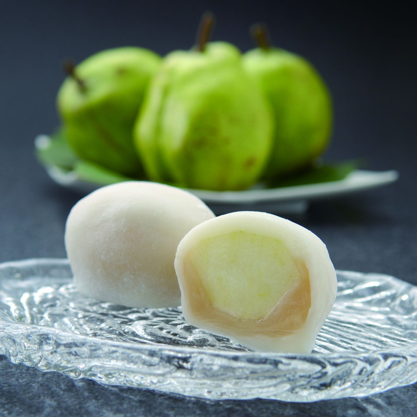 芳醇な香りと果汁が滴る、なめらかなバターのような肉質がたまらない旬のラ・フランスを大福にしました。上品な甘さが溢れた晩秋の味わいをどうぞ。