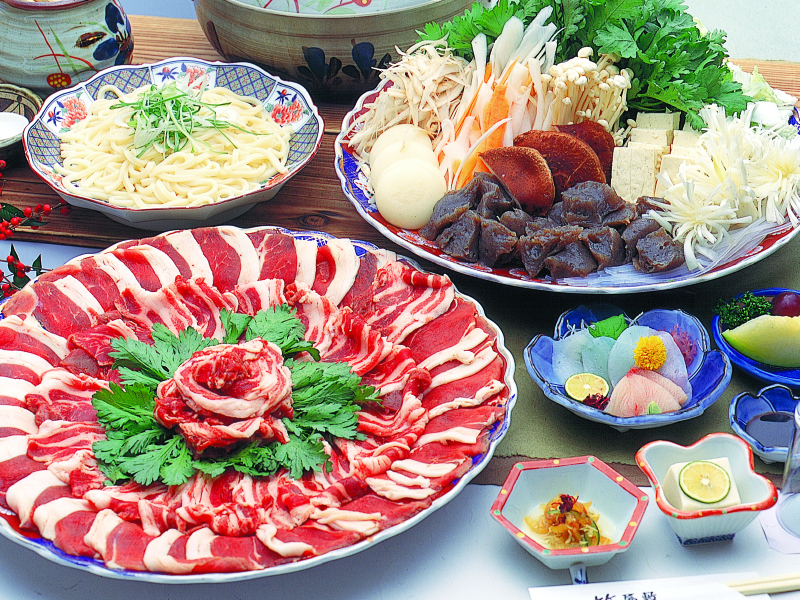 ぼたん鍋コース(写真は4人盛)お一人様6,000円+税(3名様~)