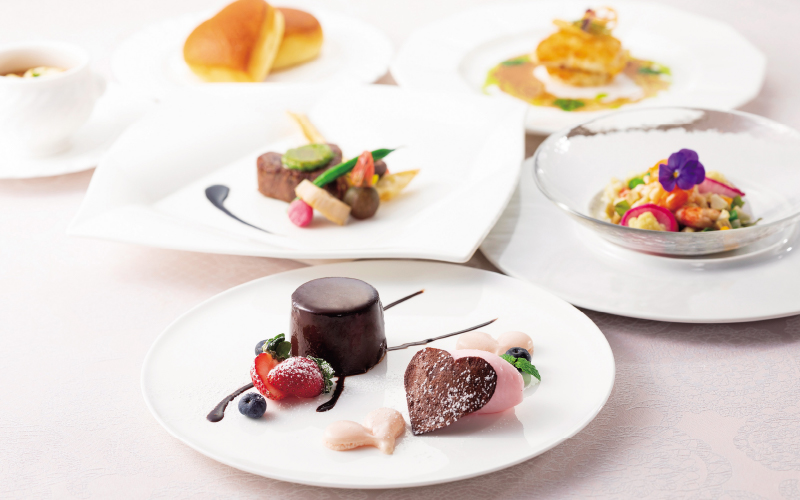 前菜からメイン、デザートまで、バレンタインデー気分を盛り上げる贅沢コースを非日常的な空間で。二人のために奏でるシェフのセンスが光る料理がずらり。夜景を眺めながら堪能するディナーが、スペシャルなひとときを演出してくれる。特別な夜にドレスアップしてお出かけしませんか?お帰りの際には、パティシエ特製チョコレートプレゼント。