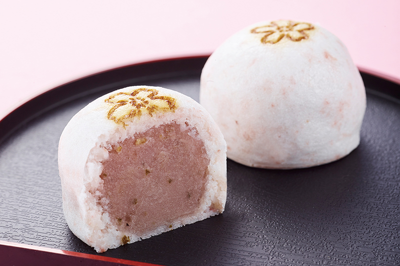 大人気のいちごと相性のよいキウイに完熟バナナ。そして上部には風味豊かなクリームチーズに塩漬桜花一輪をあしらっています。5つの素材を特製白あんで包み、大福餅に仕上げています。アクセントの桜花が春の香りを醸し出します。