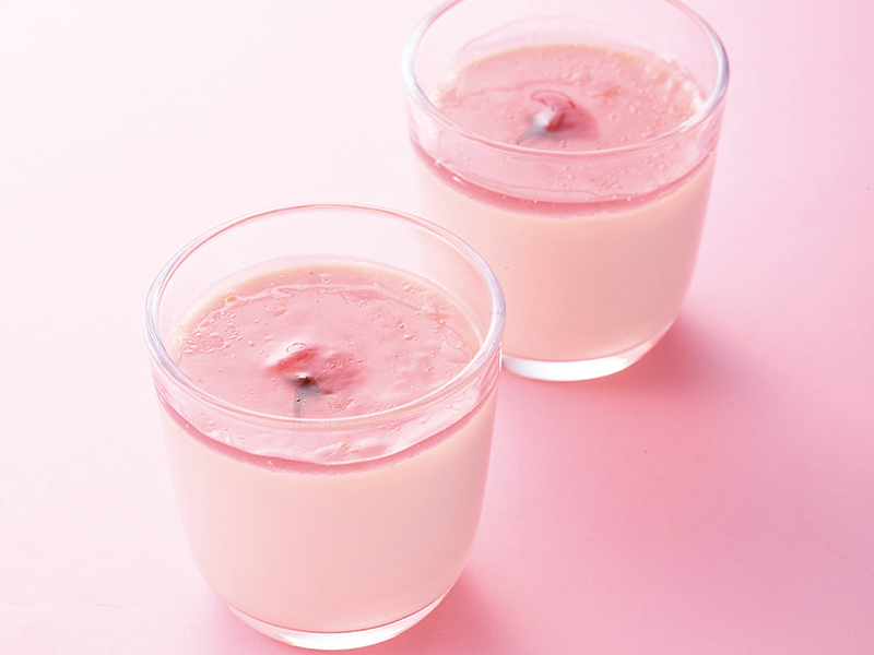 芳醇な香りのさくらジュレに桜花をアクセント。下層には、くちどけなめらかなみるくプリンを。ミルキーでコクのあるみるくプリンと爽やかな桜のジュレが奏でるハーモニー。二つの層を一緒にお楽しみください。大福豆(白いんげん豆)のかのこを入れています。