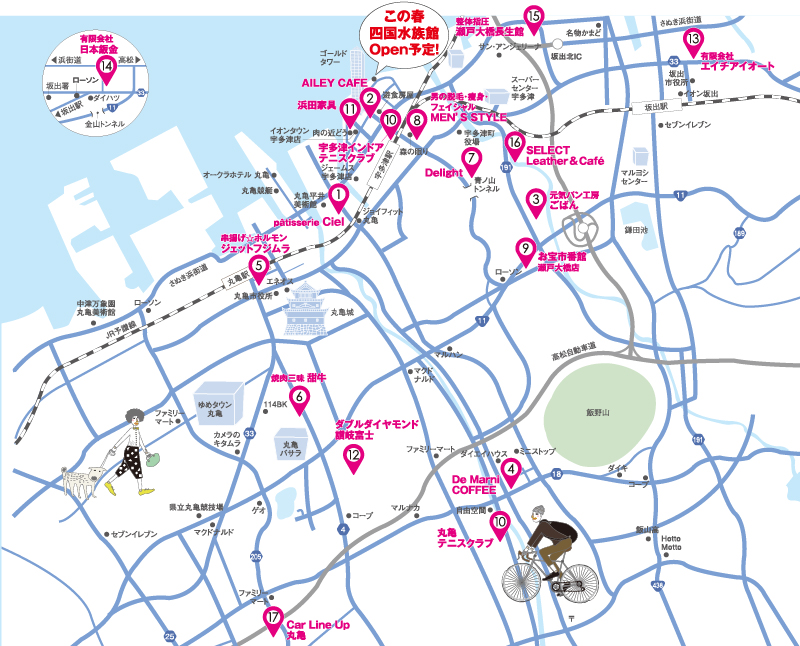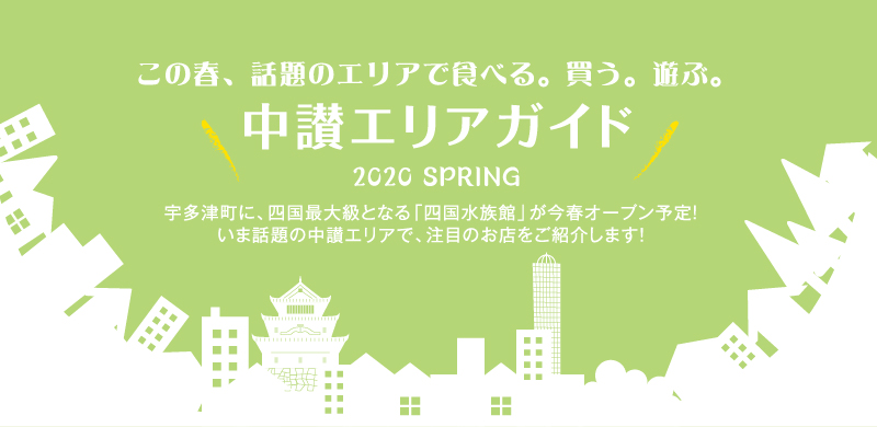 【中讃エリアガイド2020SPRING】この春、話題のエリアで食べる。買う。遊ぶ。 2020.04.02 2020.04.17 ※最新の情報とは異なる場合があります。ご了承ください。 いま、話題のエリア「中西讃」。食べる・遊ぶ・暮らすを幅広く楽しめる魅力的なお店・スポットをご紹介いたします。 ※お店の名前から各店舗の情報ページへ遷移します。 ■patisserieCiel パティスリーシエル ■AILEY CAFE アイリーカフェ ■元気パン工房 ごぱん ■De Marni COFFEE ド マーニ コーヒー ■串揚げ☆ホルモン ジェットフジムラ ■焼肉三昧 甜牛 ヤキニクザンマイテンギュウ ■Delight ■男の脱毛・痩身・フェイシャル MEN’S STYLE ■お宝市番館 瀬戸大橋店」 ■宇多津インドアテニスクラブ ■ダブルダイヤモンド讃岐富士 ■有限会社エイチアイオート ■有限会社日本鈑金 ■整体指圧 瀬戸大橋長整館 ■SELECT Leather&Café ■Car Line Up 丸亀
