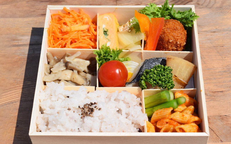 丸亀市内の「吉村農園」の有機野菜を中心に無添加で仕上げたおかずの種類は10品目。見て嬉しい、撮って楽しい、食べて優しい、3拍子揃ったヘルシーな自然派弁当。