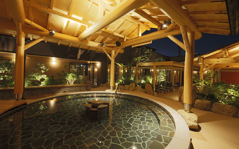 大画面テレビを見ながら外気浴ができる「ひなた湯」や壺湯など、露天エリアも充実!全面床暖房なので、寒い季節も安心!