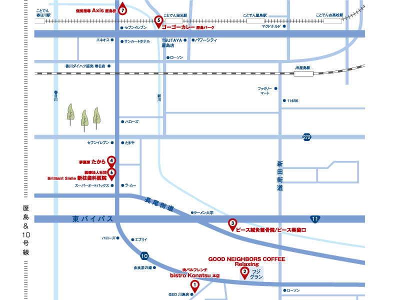 レインボー・サンフラワー周辺、高松市商店街、10号線エリア特集
