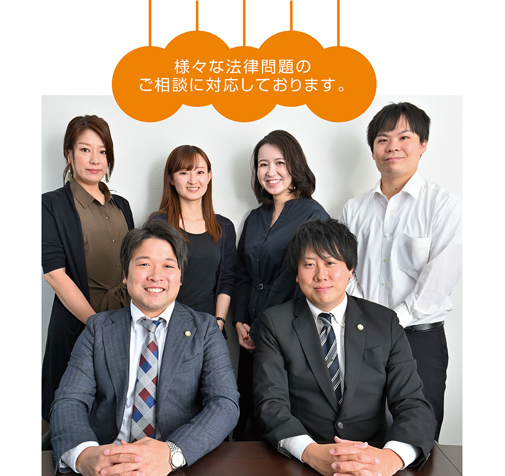 当事務所の弁護士は、準メンタル心理専門士・夫婦間カウンセラー等のカウンセリングの資格を保有しており、精神的なケアも含めた弁護活動を行うよう心がけております。ご依頼者様お一人お一人に合った柔軟な対応を行っておりますので、不安を抱えていらっしゃる方も安心してお任せください。ご相談様のニーズに沿うべく、新規相談に限っては、土・日・祝日もお受けしており、夜間や早朝についても事前にご連絡を頂ければご相談をお受けしております。ご相談様がご不安に思われた際、即座に相談できる環境を整えております。また、分野を問わず初回相談料は無料でお受けいたしますので、お気軽にご相談下さい。