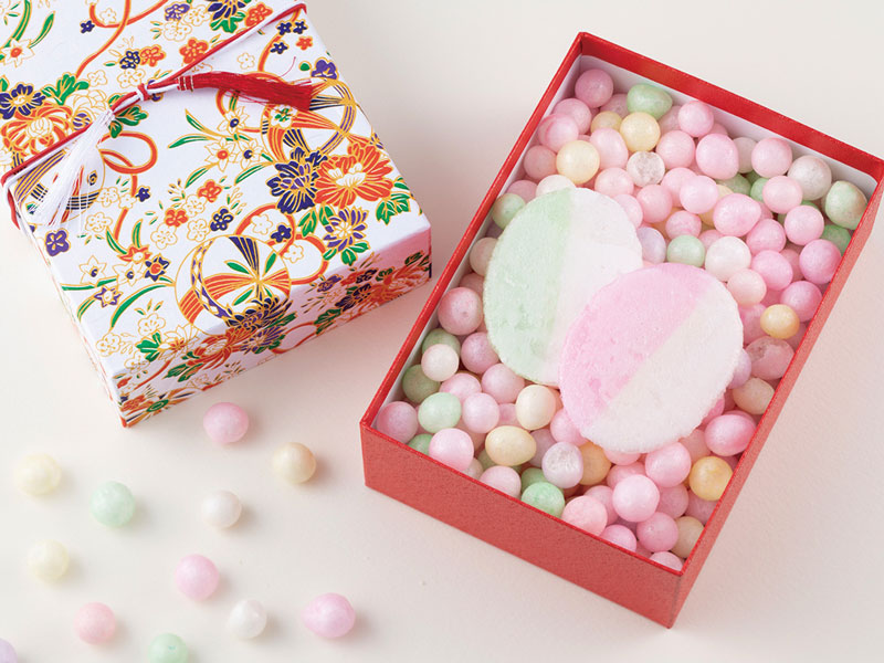 大正初期から100年以上も変わらぬ製法を守り続けている『則包商店』。香川県の西讃地域に伝わる嫁入り菓子「おいり」は、口に入れるとサクッと軽い食感、すぐにほんのり甘くスーッと溶けていくようなクセになる味わい。艶やかでかわいい色合いも魅力!●430円+税