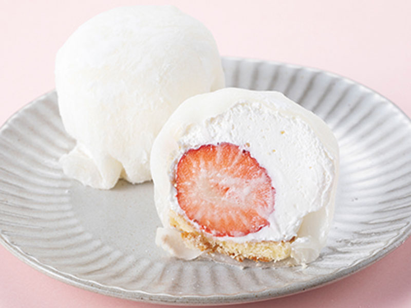 薄いお餅と生クリームのふわふわの食感が魅力。大粒のいちごと風味豊かなカステラがかくれんぼ♪ ●1個280円