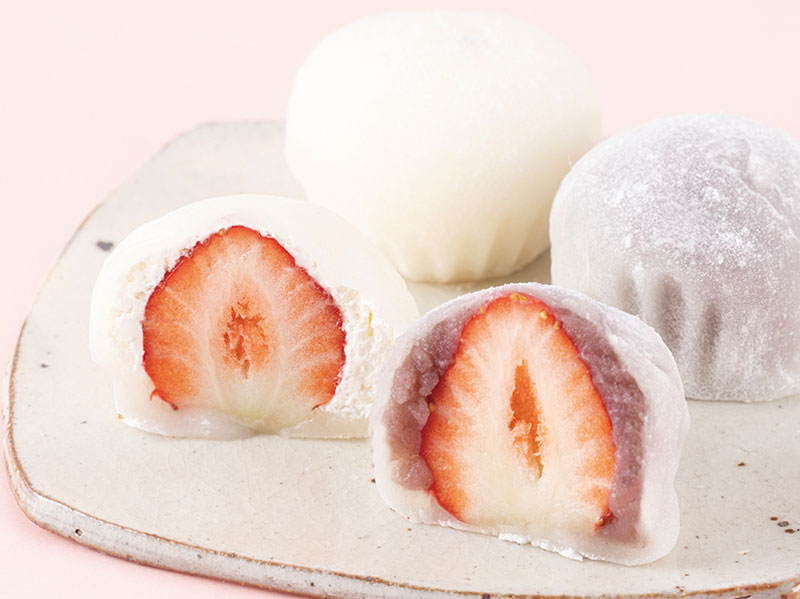北海道産小豆を使った定番のこし餡やソフトな食感の生クリーム、チョコレートを使ったまるでケーキのような大福など、全部で20種類の苺大福をご用意。苺の爽やかな酸味を活かした上品な美味しさで愛されている。 ●各180円