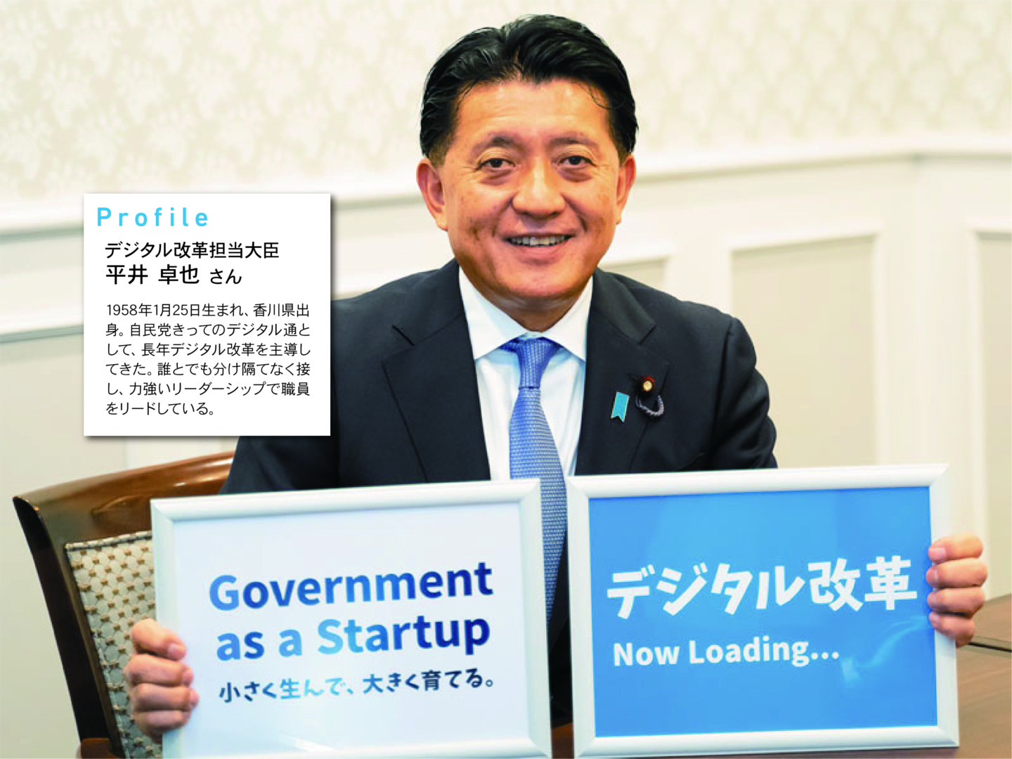 これからのまちづくりに尽力する「未来人」との対談を通して、住みやすい理想のまちを考える企画。 今回は特別に、デジタル改革担当大臣に就任した平井卓也さんの単独インタビューをお届け。