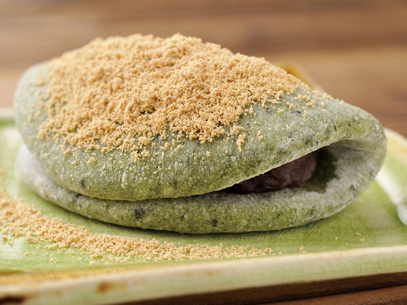 芳ばしい深煎りきなこの香りと、新鮮なよもぎの香りが口の中に広がる杵つきの草もちです。やわらかくて小豆の風味が濃厚なつぶ餡と、杵つき餅の相性は抜群で、忘れられないふるさとの味わいです。