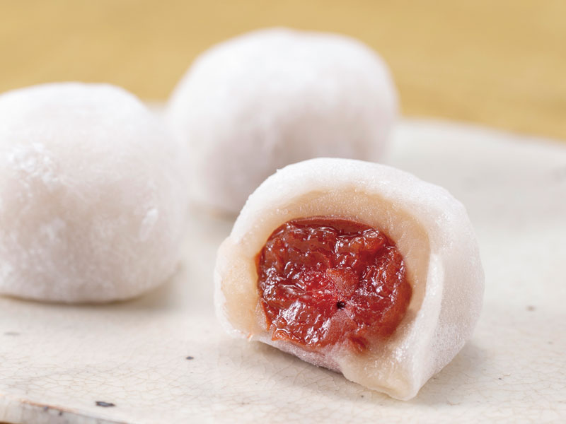 軟らかく甘露煮にした国産の梅を丸ごと1粒小さな白餡入りの大福に。甘酸っぱくて爽やかな梅の味わいを楽しんで!!