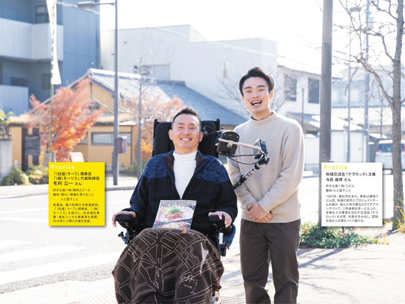 毛利 障害者などマイノリティーが当たり前の選択をできる街だ。マイノリティーとの触れ合いや感情を共有する機会が積み重なって、街はつくられる。2004年に米国に渡った時、日本との違いに驚いた。障害者が街のカフェで談笑し、おしゃれや買い物を楽しんでいる。ごく自然に街に溶け込んで暮らす様子が印象的だった。一方、地元では当時、車いすの人を街で見かける機会すらほとんどなかった。観音寺市で事業を始めた2008年、香川県の福祉は遅れているというウワサを聞いた。「それなら観音寺を日本一の福祉の街にしよう」と思った。今も変わらない原動力だ。「ラーフ」では、障害者の働く場や生活介護など、地域に足りない障害者の受け皿をつくっている。