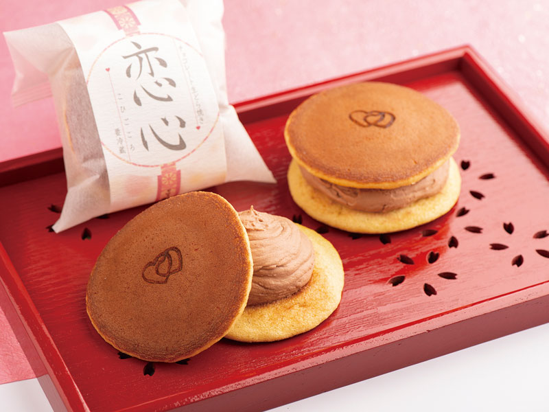 ふんわり生クリームに濃厚チョコ餡を合わせた「チョコクリーム餡」を、しっとり柔らかく焼き上げた皮でサンドしています。重ねた2つのハートに想いを込めています。
