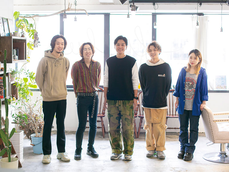 (左から)スタイリスト馬場さん、アシスタントRIKUさん、オーナースタイリストISAOさん、アシスタントSHOTOさん、スタイリストAKARIさん