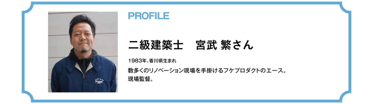 これからいちばん長く過ごして、思い出をつくる家。お客様の理想にいちばん近い住まいづくりをしてほしい。フケプロダクトではお客様の理想を叶えるため中古物件購入から資金計画、リノベーションまでをトータルにサポート。お客様が笑顔で快適に過ごせる「幸せを感じる瞬間が多い住まい」をご提案します。