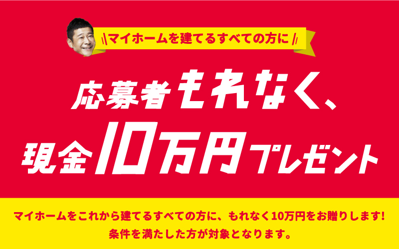 マイホームをこれから建てるすべての方に朗報! 応募者もれなく、現金10万円プレゼント!